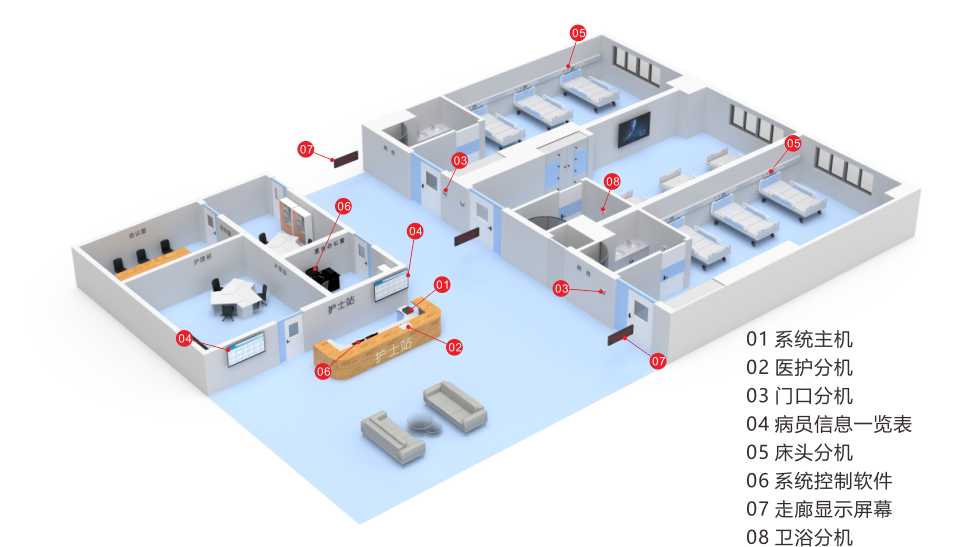 智慧病房護(hù)理系統(tǒng)是用于病房解決醫(yī)生、護(hù)士、患者之間的呼叫、對講、信息處理等功能的系統(tǒng)。該系統(tǒng)堅持"以患者為中心"的設(shè)計理念,以傳統(tǒng)病房呼叫系統(tǒng)為基礎(chǔ),以全新的方式提供強大完善的醫(yī)、護(hù)、患通訊功能,創(chuàng)造性地提供了語音提醒、信息發(fā)布、信息采集與信息處理等新功能,實現(xiàn)了醫(yī)院信息管理(HIS)系統(tǒng)向病房的延伸,是醫(yī)院數(shù)字化建設(shè)中不可缺少的重要組成部分。